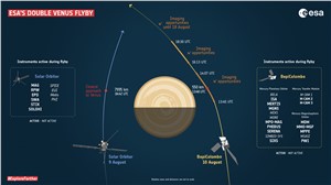 The two spacecraft need the gravitational swingby to help them lose a little orbital energy in order to reach their destinations towards the centre of the Solar System. The double flyby also offers an unprecedented opportunity to study the Venus environment from different locations at same time and, moreover, in locations that are not typically visited by a dedicated planetary orbiter.