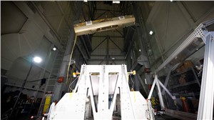 During testing, a cradle equipped with gas-powered pistons flung an 881-pound (400-kilogram) mock rocket 11 feet (3.3 meters) in the air; cables suspended from a tower 44 feet (13 meters) high offloaded more than half of the test article’s weight to simulate Martian gravity.