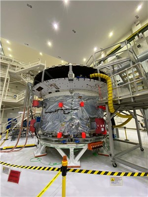 The last step is an acoustic test, during which various loudspeakers are aimed at the module to expose the ESM to different sound pressure levels. Sensors will register the vibrations of the structure and components to make sure it survives the large vibrations at launch. The final step for Airbus will then be the installation of the solar panels on the service module by the end of 2023.