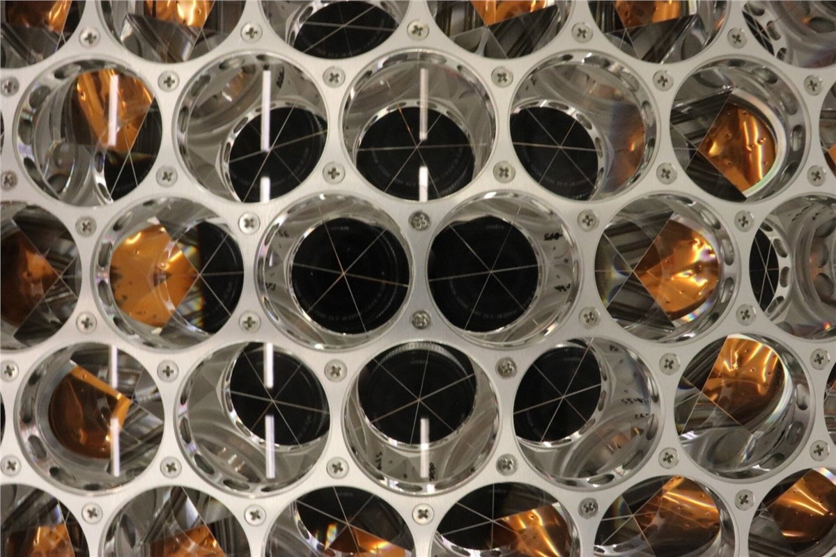In approach they resemble the mirrored ‘cat’s eyes’ embedded in motorways to reflect light precisely back to its source, thanks to an intricate internal reflection setup – a total of 48 ‘corner cubes’ in the case of the LRA, which were individually and rigorously inspected and measured in the laboratory. The optical performance of the array was accurately measured at NASA's Goddard Space Flight Center.
