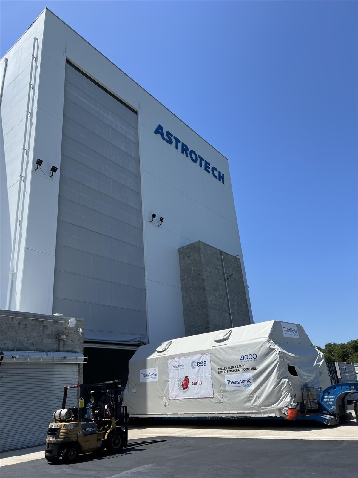 ESA’s Euclid spacecraft finished its ocean cruise safe and sound on 30 April at Port Canaveral in Florida. Subsequently, the satellite was moved by road to the Astrotech facility near Cape Canaveral.
