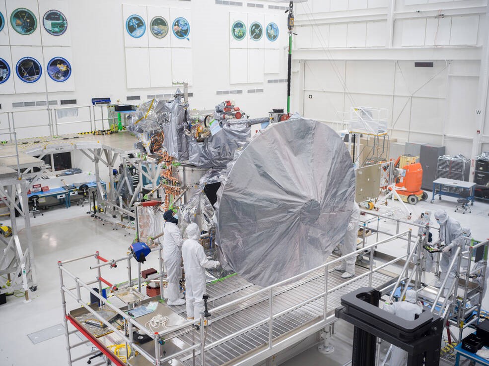 The precision-engineered dish was attached to the spacecraft in carefully choreographed stages over the course of several hours in a Spacecraft Assembly Facility bay at NASA’s Jet Propulsion Laboratory in Southern California. “The antenna has successfully completed all of its stand-alone testing,” said Matthew Bray a few days before the antenna was installed. “As the spacecraft completes its final testing, radio signals will be looped back through the antenna via a special cap, verifying that the telecom signal paths are functional.”
