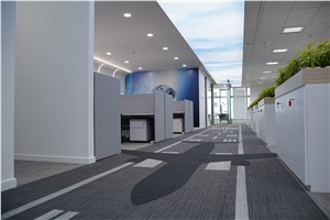 The new Boeing Indonesia office, located in Jakarta’s central business district, features traditional batik designs combined with artwork and imagery of Boeing products. The office was influenced by Boeing's Indonesian employees to create a collaborative, innovative work environment.