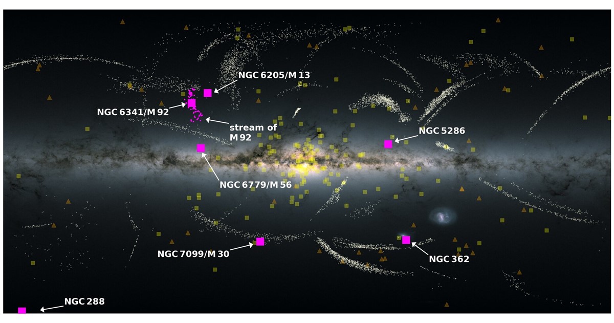 Gaia data also revealed another merger event, Arjuna/Sequoia/I’itoi, that likely happened at a similar stage to Gaia-Sausage-Enceladus. This event is thought to have filled the halo of the young Milky Way with globular clusters and ancient, high-velocity stars, all moving oddly and orbiting the ‘wrong’ way – in the direction opposite to the spiral’s spin. Arjuna/Sequoia/I’itoi and Gaia-Sausage-Enceladus may have been associated galaxies – perhaps a binary pair – before they merged with the Milky Way.