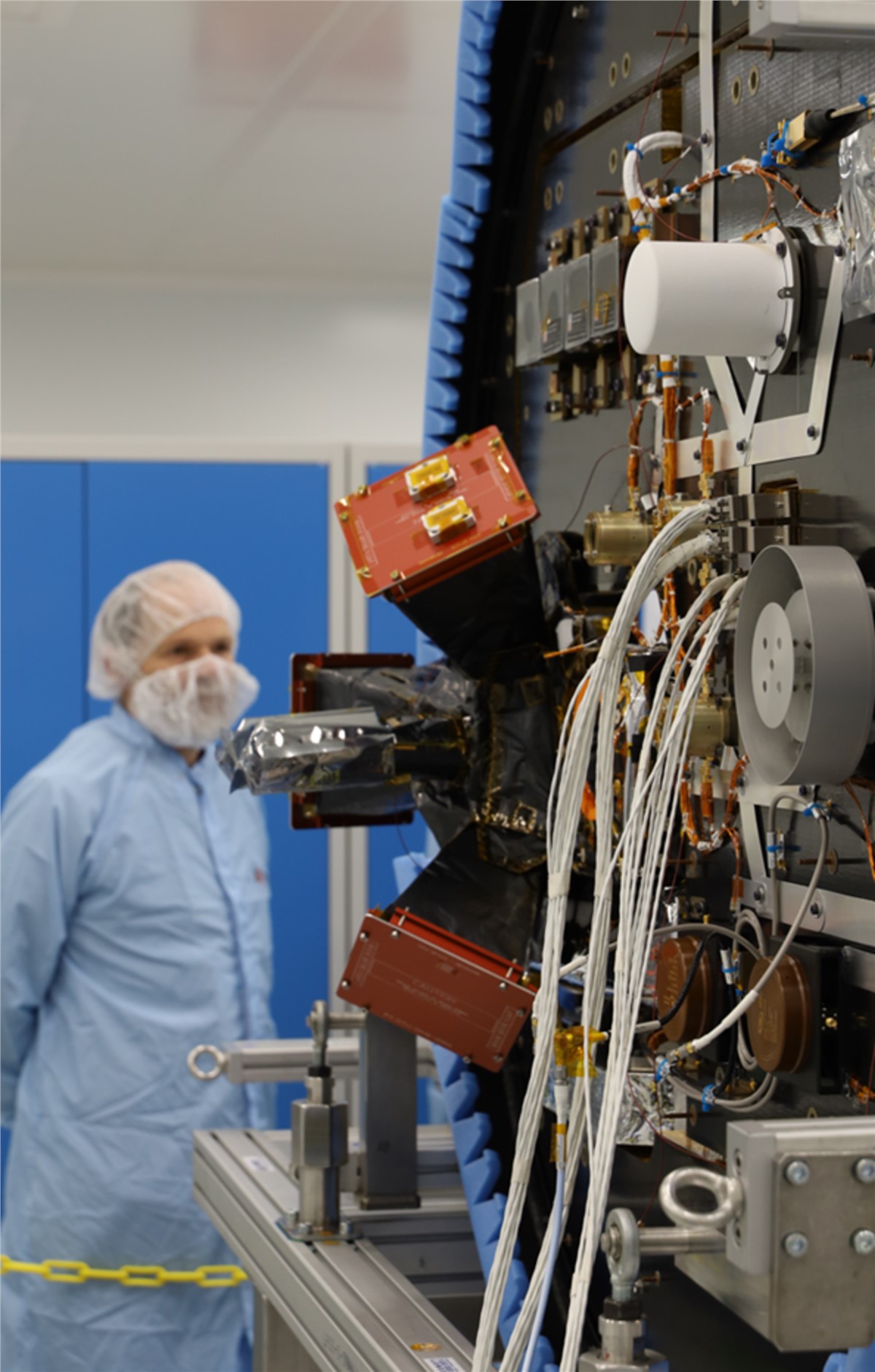 “The satellite hardware was quite something in close up,” explains Joe Zender, ESA’s Proba-3 project scientist. “I was particularly struck by how close the camera head on the Coronagraph spacecraft is to the solar array, less than a metre away. While the array relies on high solar illumination, the camera has to remain in complete darkness, with no stray light whatsoever. It really brings it home how precisely that small shadow cast by the Occulter will need to be maintained in place. We also got a peek at the carefully-machined edge of the Occulter spacecraft’s disc – normally kept under protective cover before launch. The curve of this edge has been specially designed to minimise any spillover of diffracted sunlight that would otherwise impact imaging performance.”