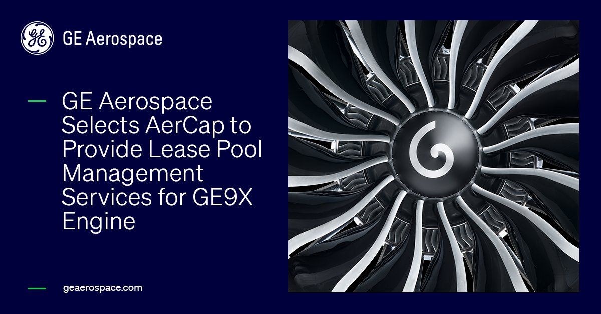 GE Aerospace (NYSE:GE) announced today it has signed a seven-year agreement with AerCap Holdings N.V. (NYSE: AER) to provide lease pool management services for the GE9X engine. The agreement also extends AerCap’s ongoing lease pool support for GEnx, GE90, CF6 and CF34 engines.