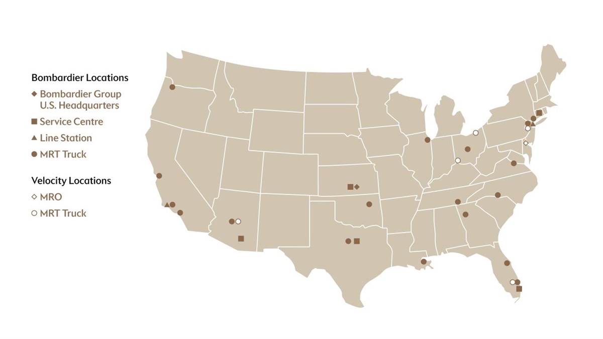 Velocity Maintenance Solutions brings further expertise and a strong reputation for service excellence to Bombardier’s existing number one network(1). The company utilizes a 35,000 sq. ft. hangar at the Wilmington, Delaware airport, and can rely on the support of 14 mobile repair trucks across the U.S. With this footprint, Velocity Maintenance Solutions will further enhance Bombardier’s ability to provide operators with a wide range of maintenance, support, and service options, close to where they fly.