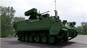 The prototype features the new ExMEP interchangeable top plate, which enhances the proven AMPV hull structure and provides flexibility to quickly integrate other mission equipment. This modular approach allows for the possibility of new turreted variants to the AMPV family of vehicles, to include CUAS.