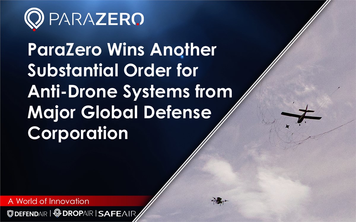 ParaZero Technologies Ltd. (Nasdaq: PRZO) (the “company” or “ParaZero”), an aerospace defense company pioneering smart, autonomous solutions for the global manned and unmanned aerial systems (UAS) industry, today announced it has secured another significant order for its Counter-UAS DefendAir solutions from a Tier 1 global defense corporation.