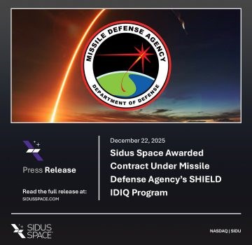 Sidus Space (NASDAQ: SIDU) (“Sidus” or the “Company”), an innovative space and defense technology company, is pleased to announce it is one of the contract awardees under the Missile Defense Agency (MDA) Scalable Homeland Innovative Enterprise Layered Defense (SHIELD) indefinite-delivery/indefinite-quantity (IDIQ) contract with a total IDIQ ceiling of $151 billion. This contract encompasses a broad range of work areas that allows for the rapid delivery of innovative capabilities to the warfighter with increased speed and agility.