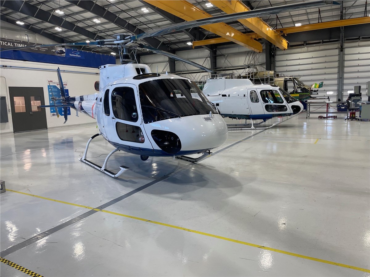StandardAero Langley transformed six 1980-era AS350 helicopters into modernized, purpose-built digital cockpit training aircraft in like-new condition. Work performed included full D-level structural refurbishment and alignment of the fuselage and tailboom, repair and modification of composite canopies and cowls, 12-year airframe inspections, custom interiors with new flooring and upholstery, custom exterior & interior paint, and a suite of safety and avionics upgrades.