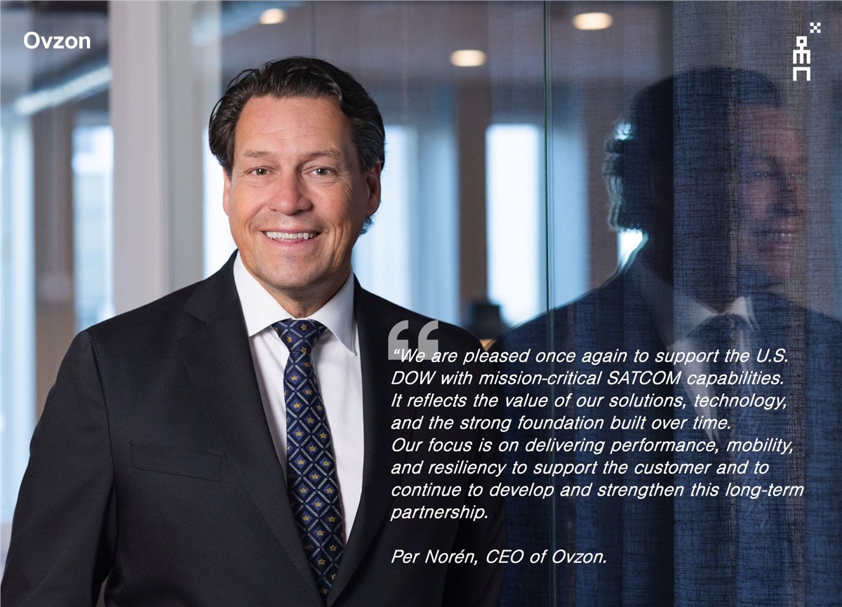 “We are pleased to once again support the U.S. DOW with mission-critical SATCOM capabilities. It reflects the value of our solutions, technology, and the strong foundation built over time. Our focus is on delivering performance, mobility, and resiliency to support the customer and to continue to develop and strengthen this long-term partnership,” says Per Norén, CEO of Ovzon.